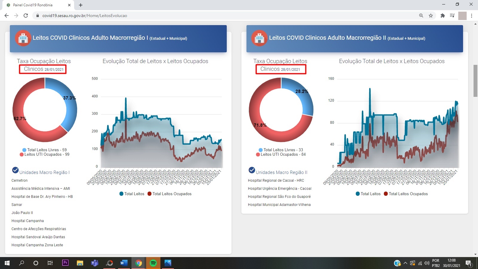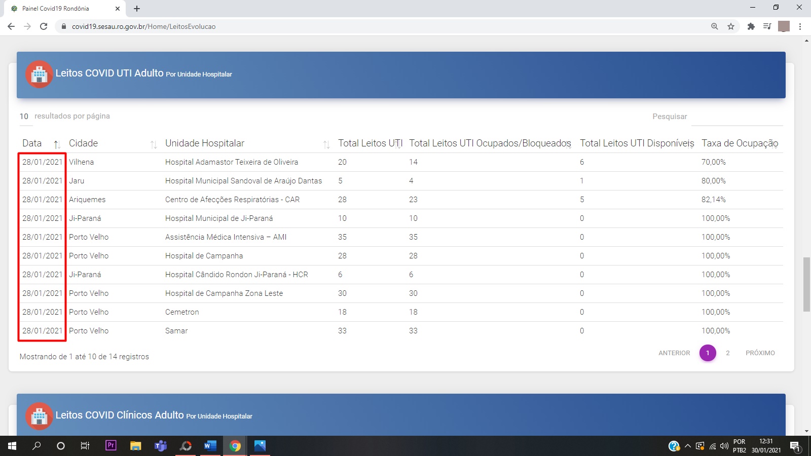 O Governo de Rondônia não atualiza os dados sobre a ocupação nos leitos clínicos e de Unidade de Terapia Intensiva (UTI), desde a última quinta-feira (28). Isso é o que demonstra o Painel Covid, onde são informados os números da covid-19 em Rondônia.