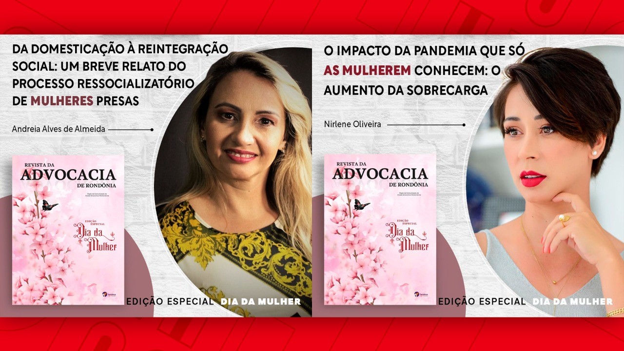 A Revista da Advocacia de Rondônia, tem periodicidade recorrente e nesta edição homenageia as mulheres, através da publicação de diversos artigos feitos por algumas expoentes do Direito rondoniense, versando sobre temas femininos. O lançamento desta edição especial, será hoje às 19h. O acesso ao lançamento será através do site: