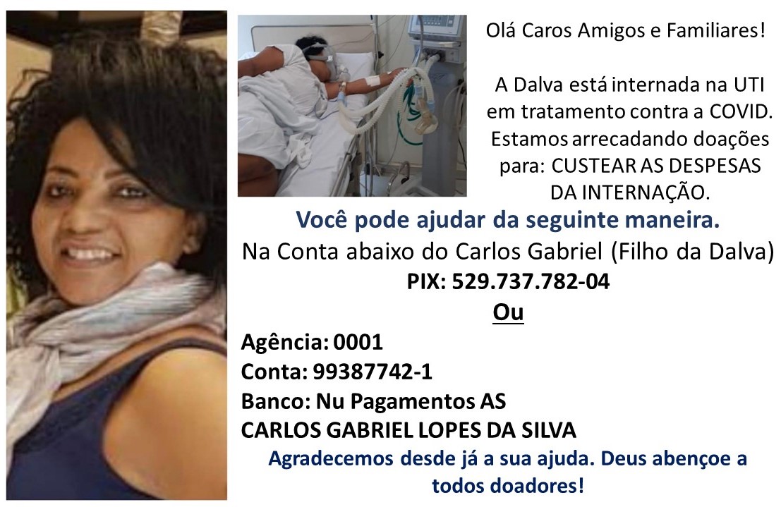 Familiares de Dalva Lopes, que está internada desde as duas últimas semanas com COVID-19, criaram uma campanha solidária a fim de arrecadar dinheiro para pagar as despesas da internação dela.