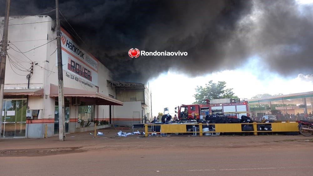 Um incêndio de grandes proporções atingiu uma loja de pneus, na tarde desta sexta-feira (26), em Porto Velho (RO).