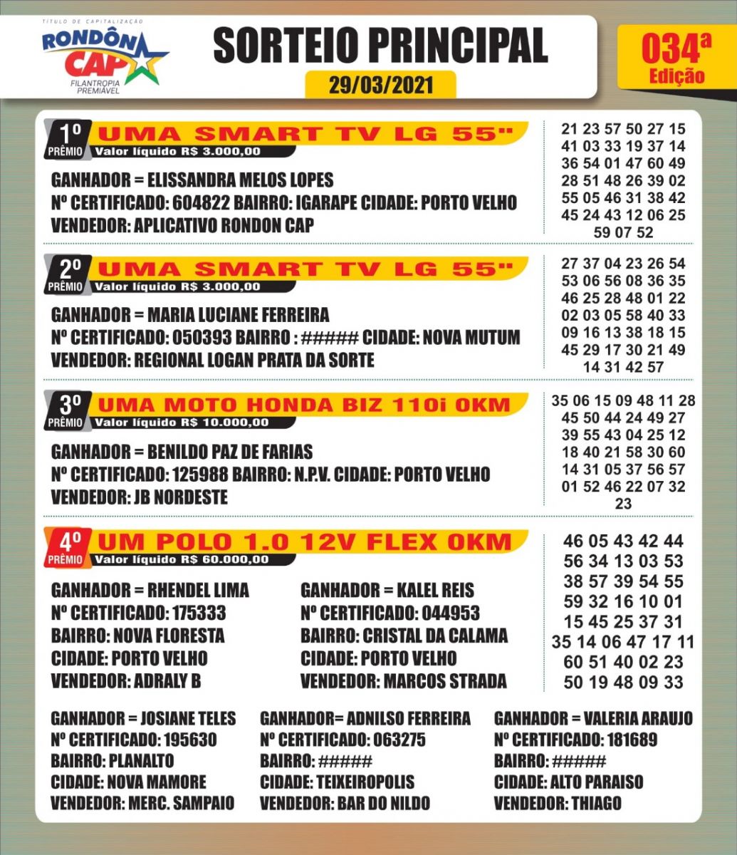 Confira quais foram os ganhadores do sorteio principal e dos giros da sorte: