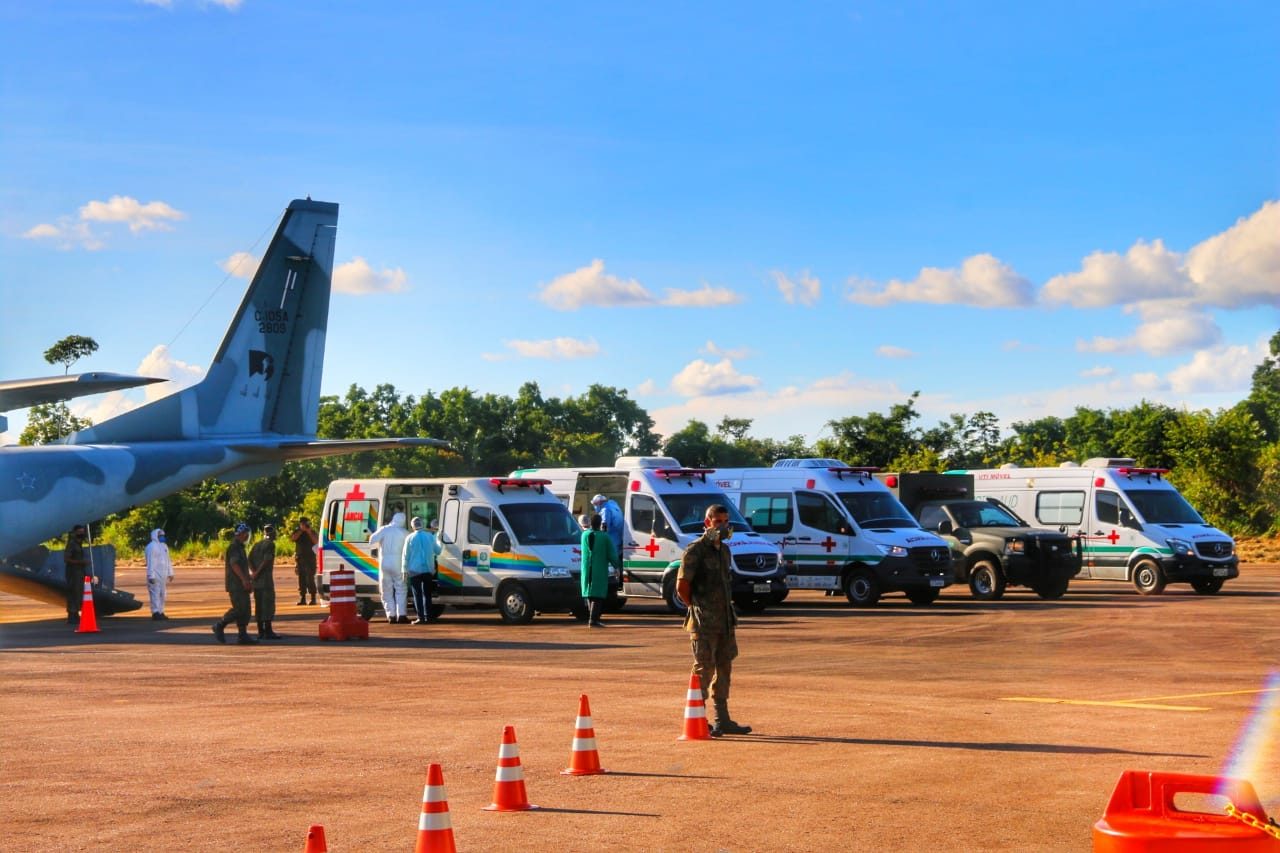 Fila de ambulâncias para transferir pacientes para outros Estados | Foto: Governo de Rondônia