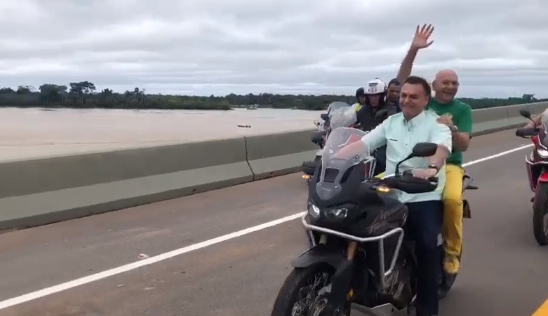Ele deu duas voltas na ponte, sendo uma com o ministro da Infraestrutura e depois com o empresário Luciano Hang; veja o vídeo