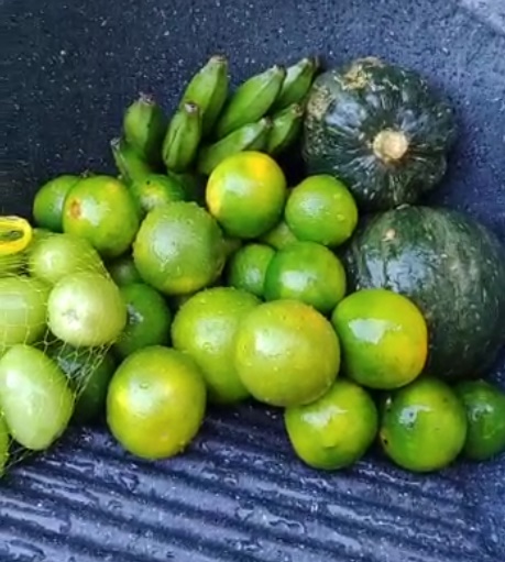 Ao contrário do que foi anunciado pela Secretaria Estadual de Educação, a cesta de alimentos constava apenas 8 tomates, 2 aboboras, laranjas, 1 palma de banana e chuchu. E, como se não bastasse, todos os ingredientes estavam verdes.