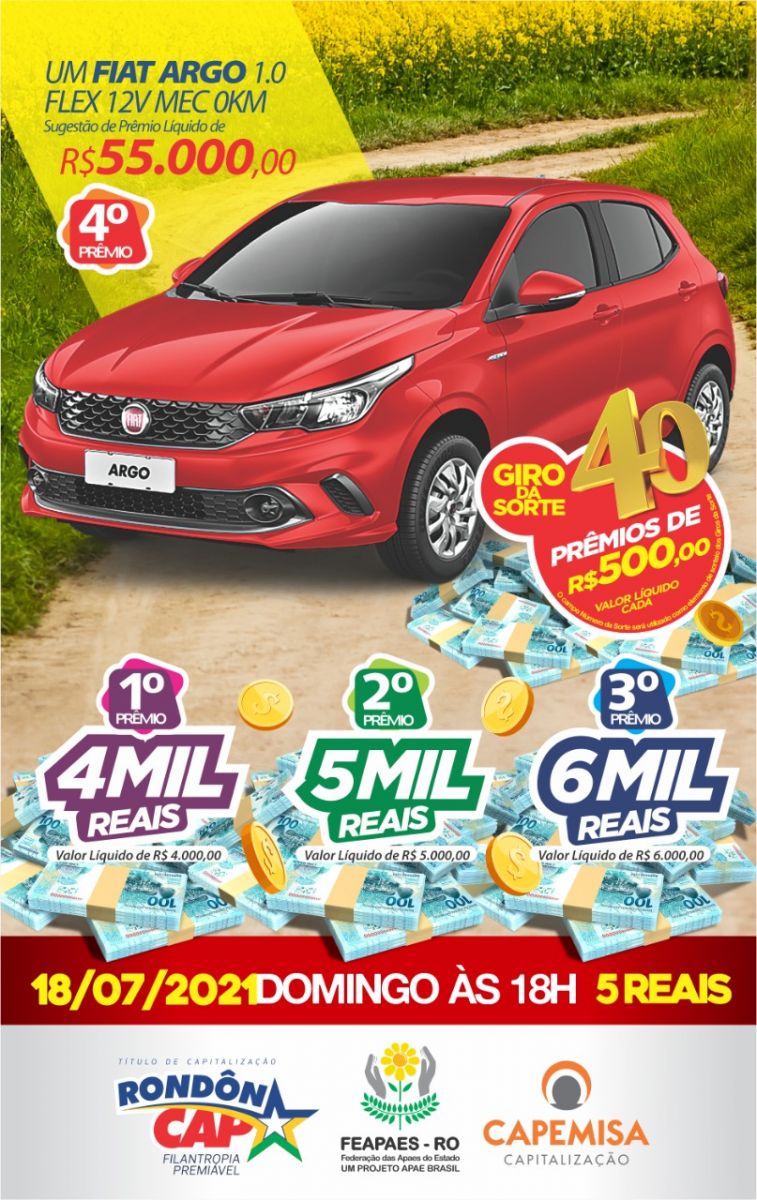 Todo mundo já sabe, mas vamos lembrar mais uma vez: com o Rondoncap, você ajuda as Apaes de Rondônia e concorre a prêmios sensacionais que podem te dar uma forcinha neste mês de julho.