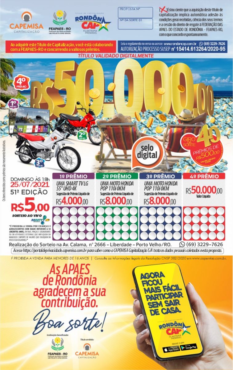 Ajude as Apaes de Rondônia, participe e boa sorte!