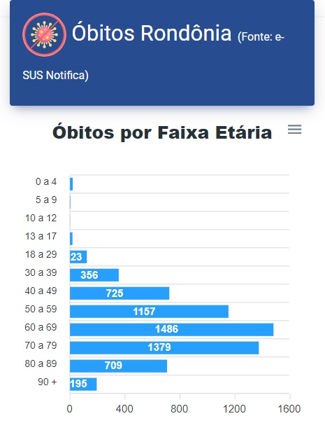 No levantamento pela plataforma E-Sus, a faixa etária que mais foi vítima do coronavírus e lidera esse triste ranking, foram de pessoas que tinham entre 60 e 69 anos. O total é de 1.486 óbitos nesse grupo.