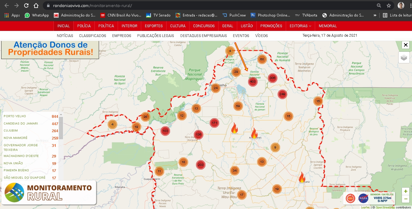Rondoniaovivo está fazendo o levantamento em tempo real da situação dos focos de incêndio em nosso estado.
