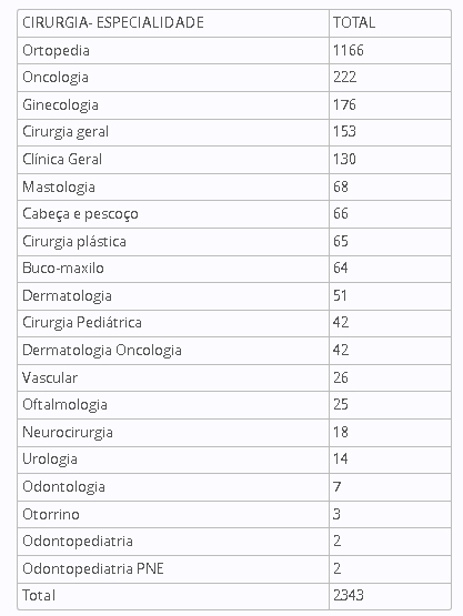CLASSIFICAÇÃO DE CIRURGIAS POR ESPECIALIDADE