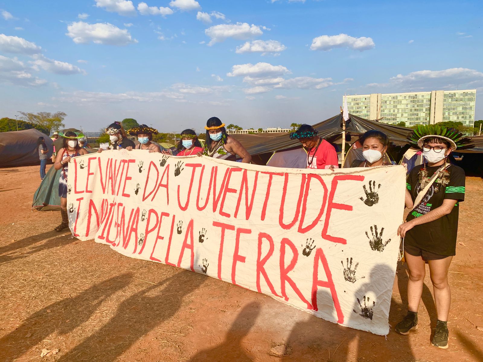 Os líderes do movimento divulgaram que o acampamento e as manifestações nas ruas da capital federal são atos “pela garantia de seus direitos originários e contra o marco temporal”. Os indígenas também denunciam “o agravamento da violência contra os povos originários, dentro e fora dos territórios tradicionais”.