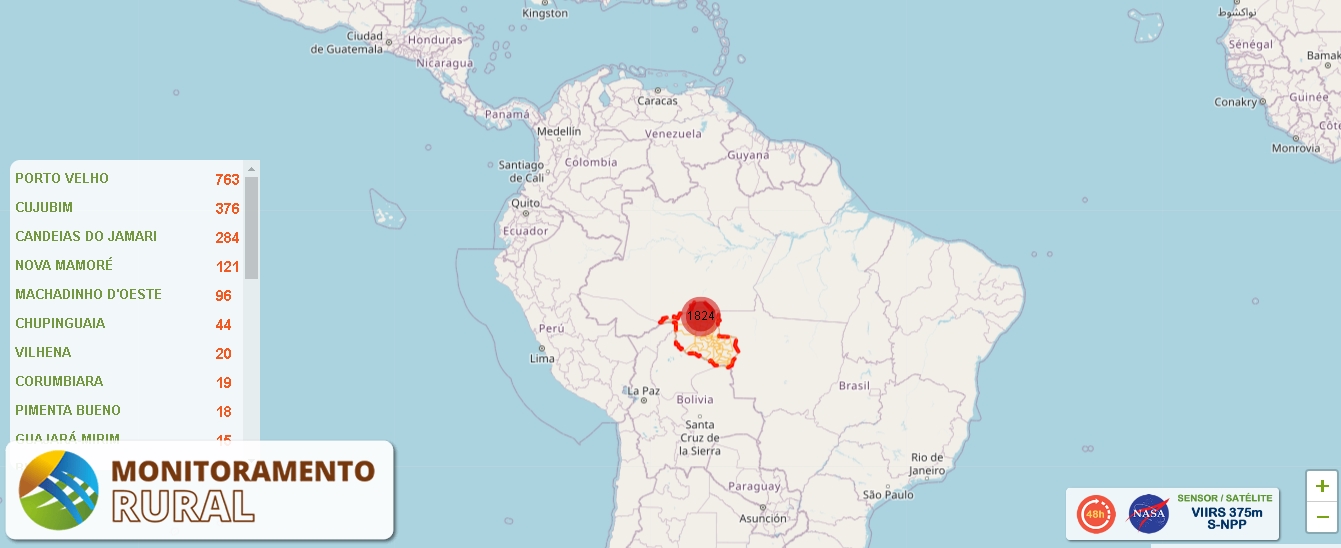 Já os municípios que registram apenas um foco de queimadas são: Novo Horizonte do Oeste, Governador Jorge Teixeira, Parecis e Cacaulândia.