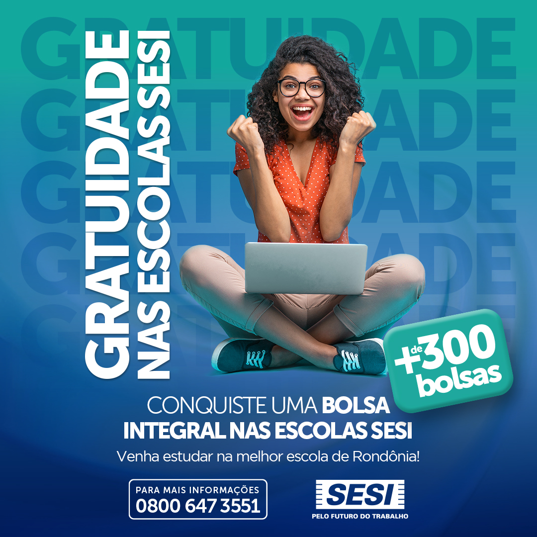 O Serviço Social da Indústria de Rondônia (SESI-RO) lança nesta segunda-feira, 13, o edital de gratuidade regulamentar disponibilizando mais de 300 vagas para o Ensino Fundamental 1 e 2 e Novo Ensino Médio nas unidades SESI de Porto Velho, Cacoal e Vilhena. As vagas são direcionadas à comunidade de baixa renda.