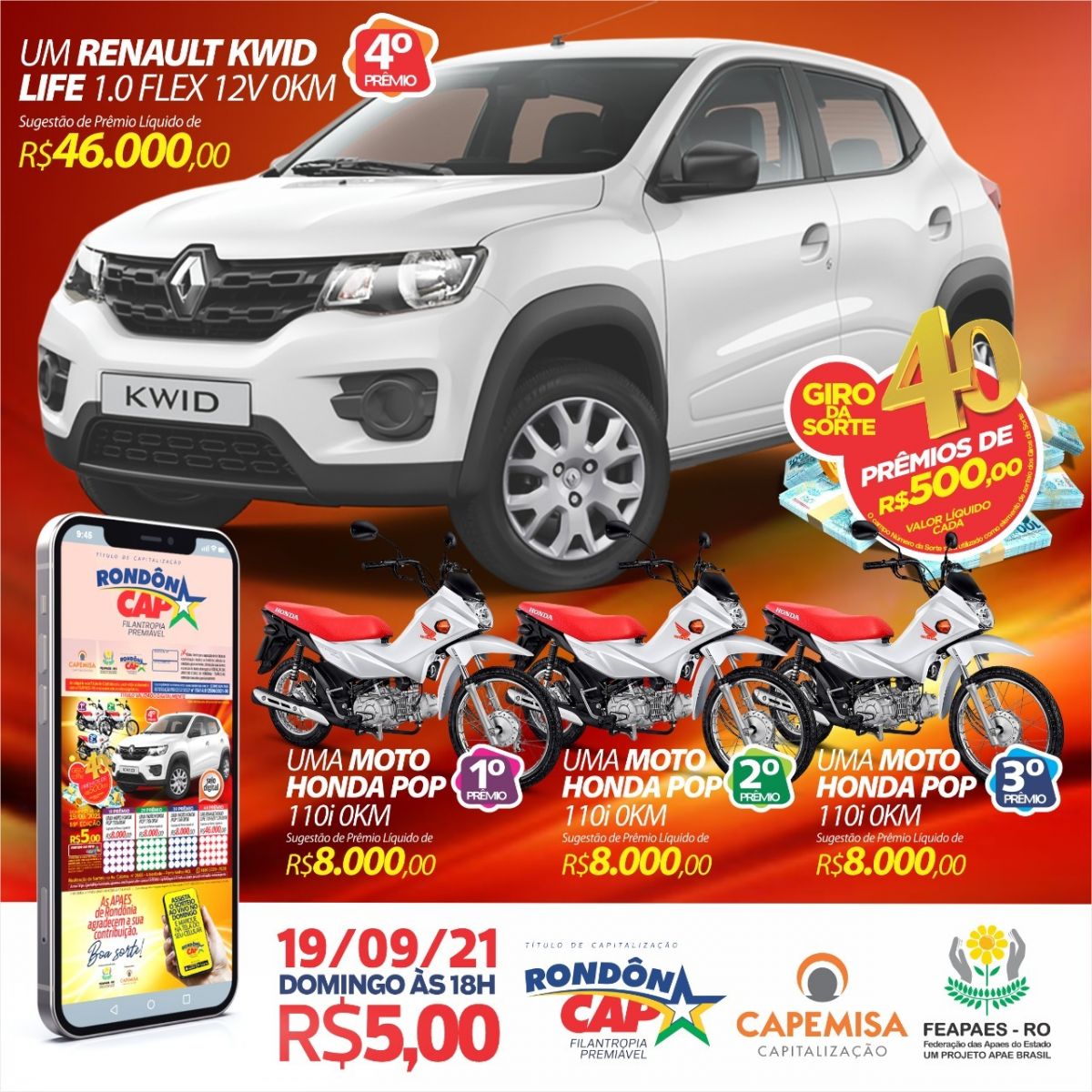 Já pensou em concorrer a um carro zero km e mais 3 motos Honda com apenas 5 reais? No Rondoncap deste domingo você pode.
