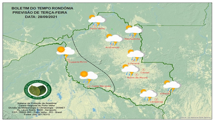 Há possibilidade de temporais em todo o estado, que podem ocorrer de forma pontual acompanhados de ventanias.