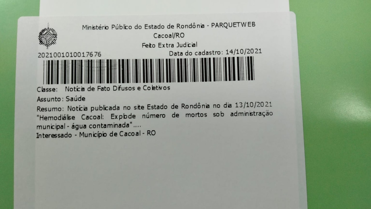 Recentemente, o Ministério Público Estadual (MPE) instaurou um feito extrajudicial, na classe de fatos difusos e coletivos, na área da saúde, para apurar a explosão de mortes no Centro de Diálise de Cacoal, após a Prefeitura assumir o serviço.