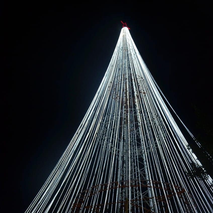 A árvore gigante de 54 metros com cerca de 150 mil lâmpadas de Led, foi instalada na Praça da Vitória, cartão postal da cidade.