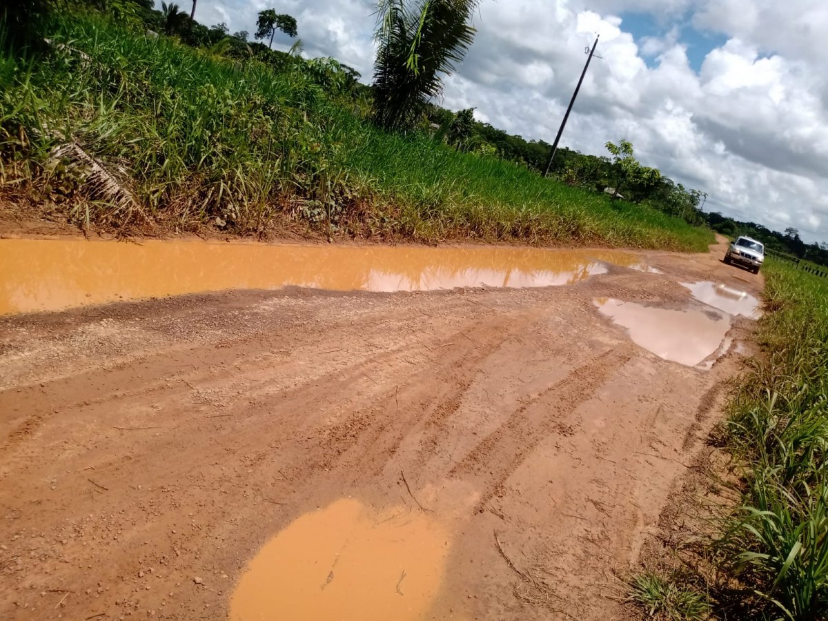 “A gente mora desde 2015 e nunca viu ninguém arrumando essa estrada. É difícil tirar nossos produtos daqui. Carro quebra demais por causa da estrada. A gente vive nesse sofrimento. O dinheirinho que faz, já leva o carro para oficina”, falou em vídeo a dona Valdenora, que produz farinha e traz para vender na capital.
