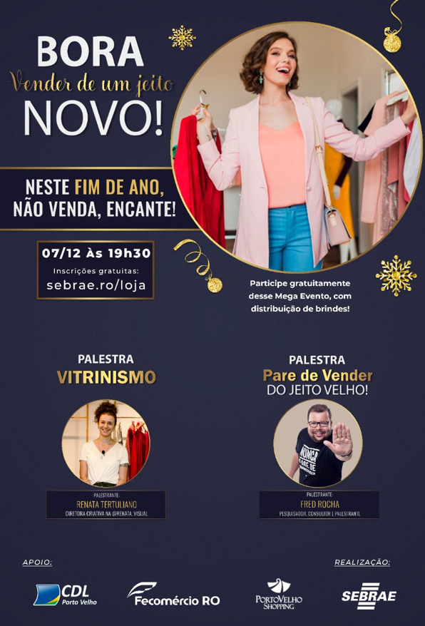 O período de fim de ano é celebrado no comércio como o melhor para o aquecimento das vendas. O Sebrae propõe, claro, que as empresas aproveitem o período, mas que se organizem para o restante do ano, especialmente fidelizando clientes, otimizando as vendas ao longo dos doze meses do ano. Para reforçar a importância dessa estratégia, vai promover o evento “Bora vender de um jeito novo!”, que acontecerá no próximo dia 7 de dezembro no Porto velho Shopping, a partir das 19h30.