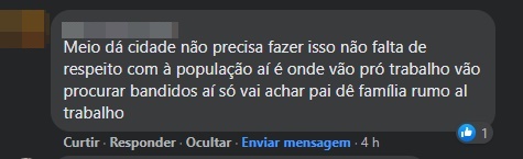 “No meio da cidade não precisa fazer isso não. Falta de respeito com a população! Aí é onde [as pessoas] vão para o trabalho. Vão procurar bandidos. Aí só [vocês] vão achar pai de família rumo ao trabalho”, escreveu a internauta.