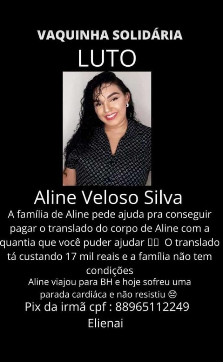 Os depósitos podem ser feitos na chave PIX – 889651112249, que está em nome de Eleinai, que é irmã de Aline.