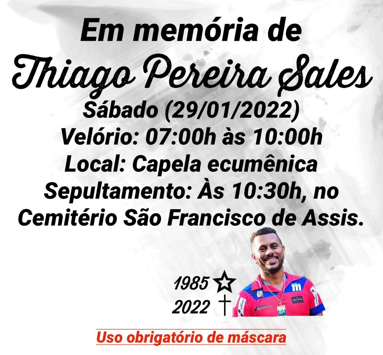 De acordo a viúva do rapaz, Francis Fabrieny, o velório de Thiago será realizado na manhã do sábado (29), na capela ecumênica da cidade. O uso de máscara será obrigatório.