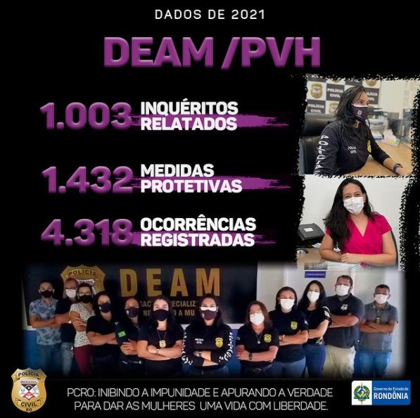 Dados de 2021 dos atendimentos feitos pela Delegacia da Mulher em Porto Velho. Foto: Instagram/PC-RO