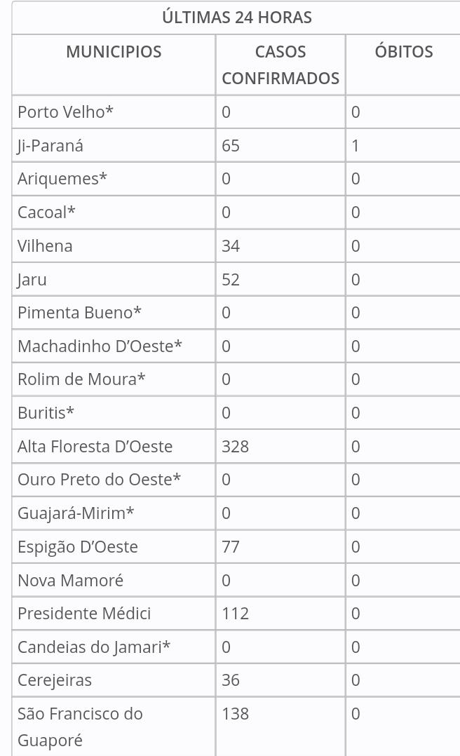 No total, Rondônia soma 348.484 casos conhecidos e cerca de 6.900 pessoas morreram lutando contra o vírus.