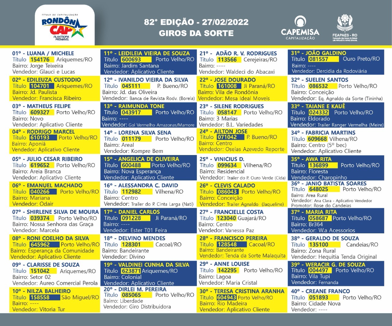 O Rondoncap, continua levando a sorte e a solidaredade para todo o Estado de Rondônia. Veja quais foram os ganhadores dos prêmios principais e giros da sorte, abaixo: