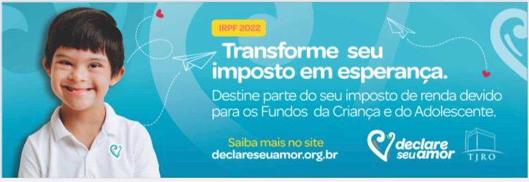 O Tribunal de Justiça de Rondônia lançou a campanha Declare Seu Amor. Todas as pessoas que forem declarar Imposto Renda podem doar até 3% do valor que tem para pagar ou receber de volta.