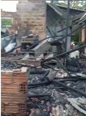 Um incêndio destruiu todo o pouco patrimônio que a dona Simone e o esposo construíram com muito esforço. O casal ainda tem três filhos, incluindo um recém-nascido com 20 dias de vida.