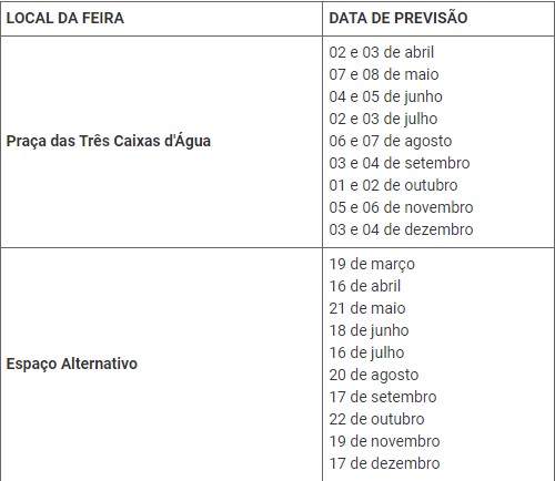 A organização e coordenação das feiras são da Secretaria Municipal de Indústria, Comércio, Turismo e Trabalho (Semdestur). Centenas de pessoas já participaram como expositoras de produtos diversos como, por exemplo, artesanato, salgados, doces gourmet, entre outros. A ocasião proporciona a venda e ganhos financeiros aos participantes.