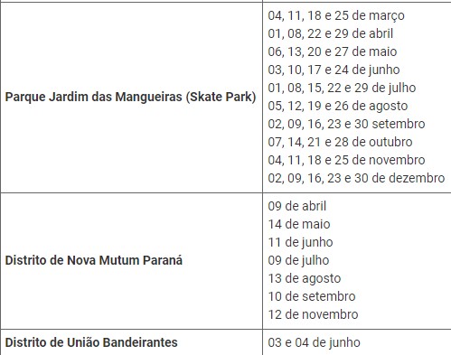 Segundo a secretária da Semdestur, Glayce Bezerra, uma série de eventos está confirmada ao longo do ano nos espaços públicos da cidade de Porto Velho. Entre eles, a Praça das Três Caixas d’Água, o Parque Jardim das Mangueiras (Skate Park) e o Espaço Alternativo e, ainda, edições nos distritos de Nova Mutum Paraná e União Bandeirantes.