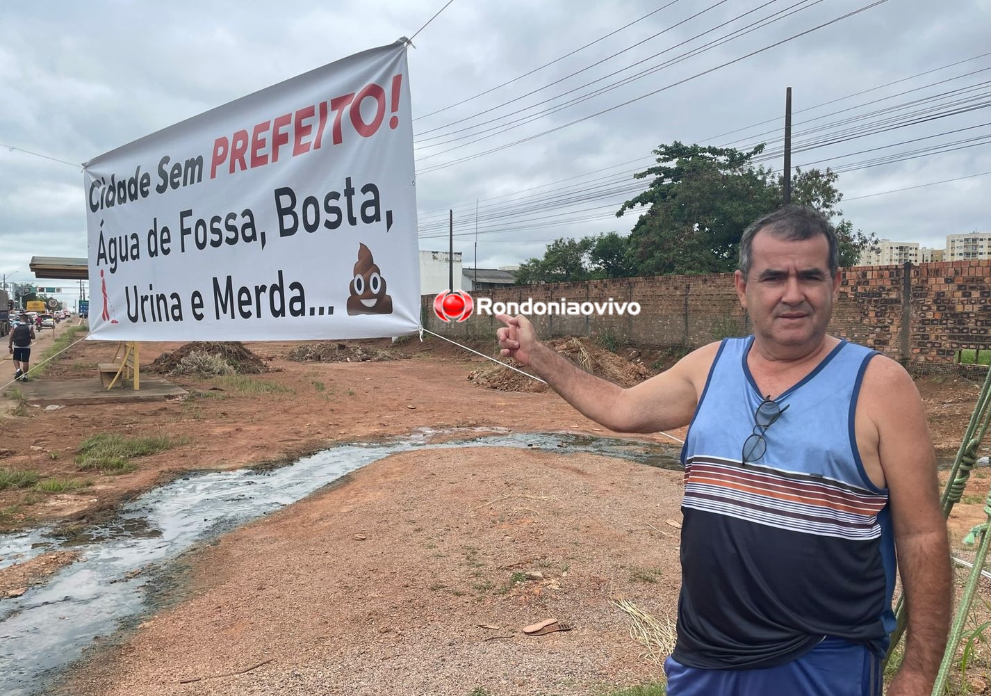 Uma faixa com os dizeres: “Cidade sem prefeito! Água de fossa, bosta, urina e merda...”, foi fixada na Avenida Imigrantes, zona Norte de Porto Velho. A insatisfação é contra uma rede de esgoto que está vazando e causando fedor insuportável no local.