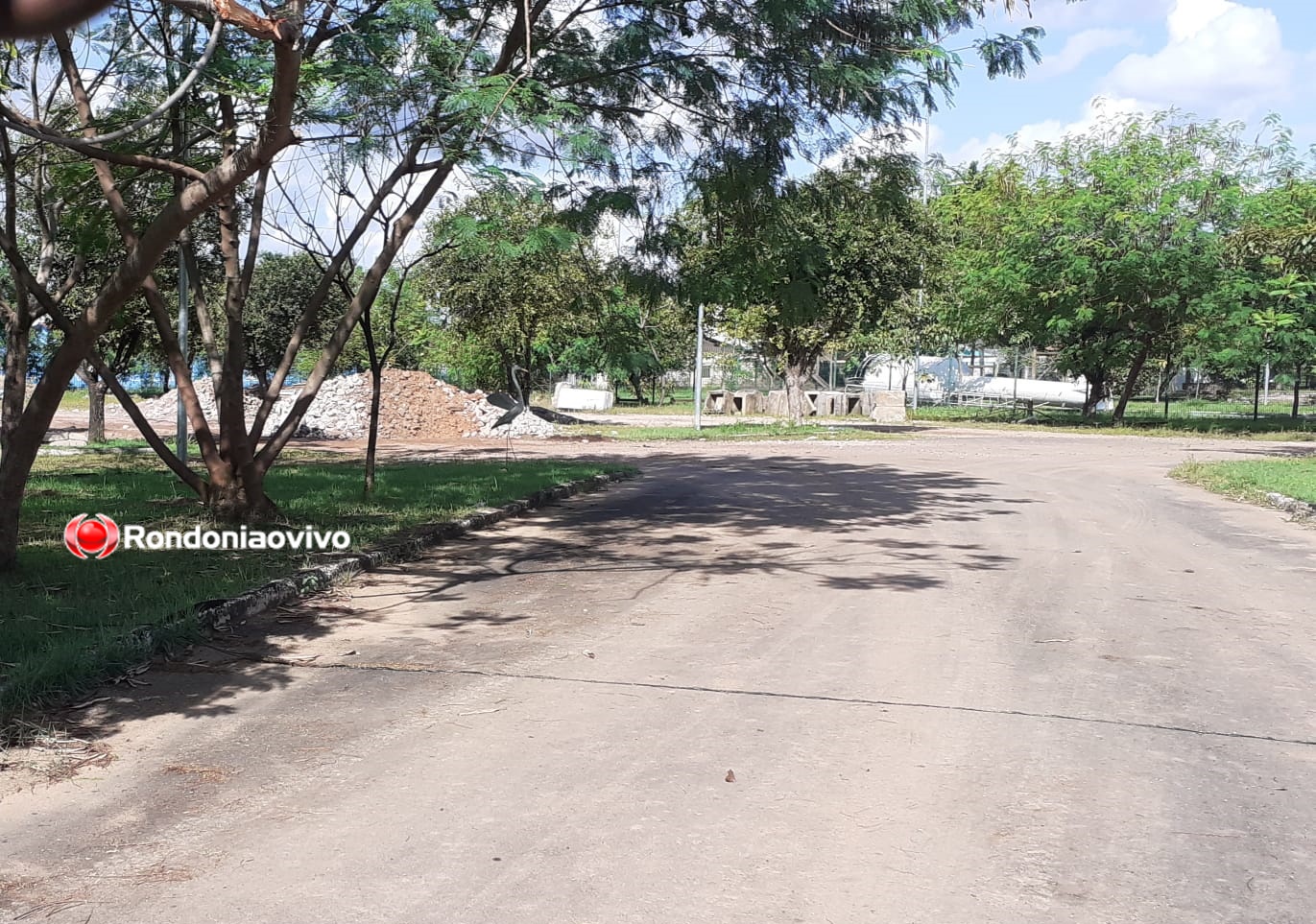 A diferença é algumas máquinas pesadas estacionadas no local, montes de terra e pedras, além de alguns operários que capinam o mato em algumas áreas da entrada do Parque da Cidade.