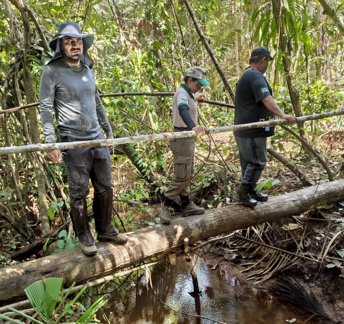 As responsáveis pela gestão da Unidade de Conservação Serra dos Três Irmãos, Mayna Silva e Ana Macedo, recepcionaram na última quarta-feira (18), André Aguirre. Ele é técnico da Fiocruz de Rondônia e fez uma visita técnica à sede da Estação Ecológica e entorno, ao Assentamento Joana D 'Arc agrovilas I, II e III.