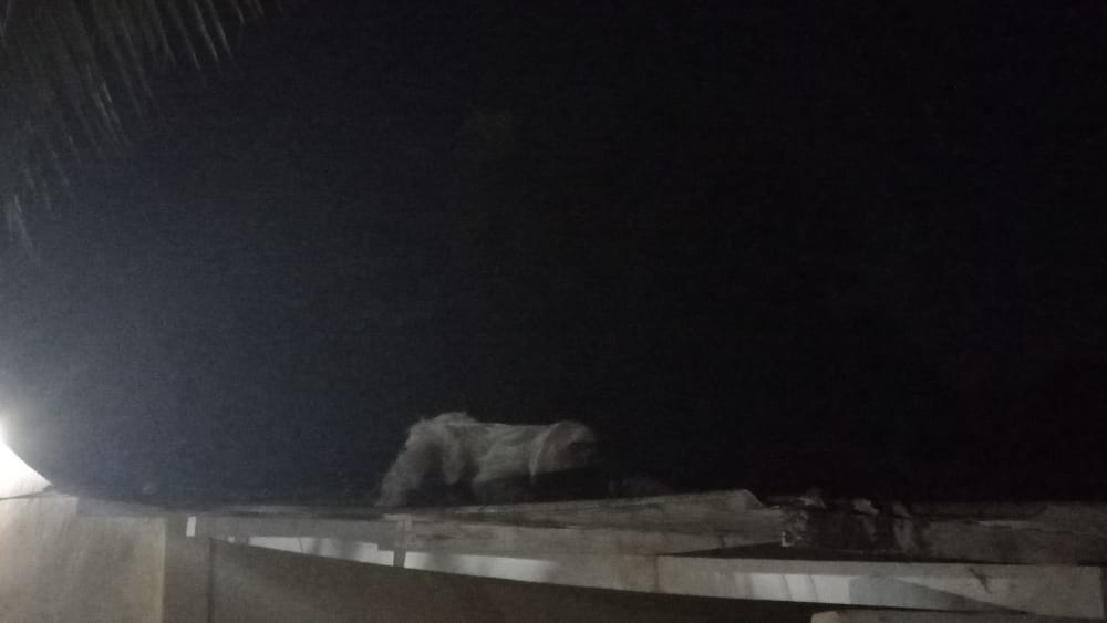 Ainda de acordo com o rapaz, o animal continua na residência e já está no telhado.
