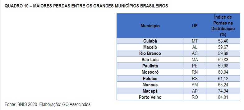 “As perdas de água no Brasil não apresentaram melhora nos últimos anos, o Trata Brasil já acompanha a situação de perdas há alguns anos e fica evidente que não foram implantadas soluções eficientes para resolver a questão. Os investimentos tornam-se muito maiores para construir novas estações de tratamento de água e adutoras, por exemplo, que não precisariam estar sendo construídas, caso houvesse redução das perdas ao longo do processo”, destaca Luana Pretto, presidente-executiva do Trata Brasil.