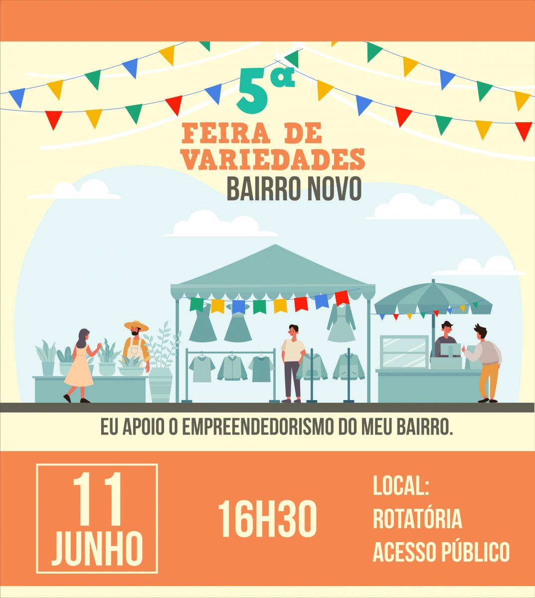 A boa pedida para este sábado, 11, véspera do dia dos namorados, é a Feira de Variedades Bairro Novo. Os empreendedores estão retornando com os trabalhos da feira, após o período das chuvas. O evento, que já está em sua quinta edição, será na rotatória do Bairro Novo, às 16h30.
