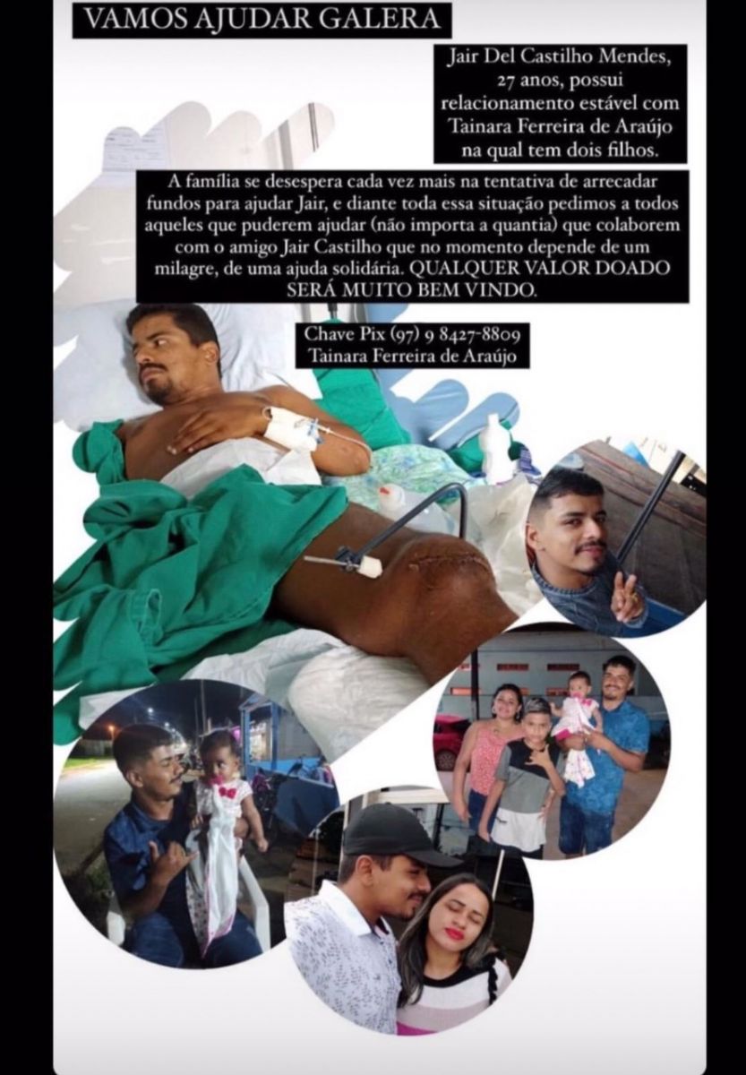 Além do drama de saúde, começou também um drama financeiro. Por esse motivo, a família dela começou uma campanha pedindo ajuda para arrecadar R$ 90 mil. Quem quiser colaborar pode fazer pelo Pix: 97984278809, em nome de Tainara Ferreira de Araújo. Quem quiser mais informações pode entrar em contato pelo telefone 69999554035.