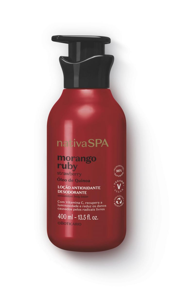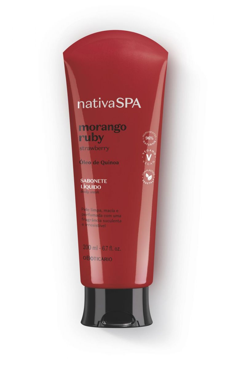 Composta por loção corporal (disponível em três volumetrias), esfoliante corporal, sabonete líquido, body splash, shampoo e condicionador, Nativa SPA Morango Ruby é aliada da consumidora que busca por uma linha de uso diário para garantir a manutenção da luminosidade da pele e proporcionar nutrição superior aos cabelos, sem perder a perfumação intensa já reconhecida de Nativa SPA e o bem-estar gerado pelos momentos de autocuidado, com produtos cruelty free e veganos.
