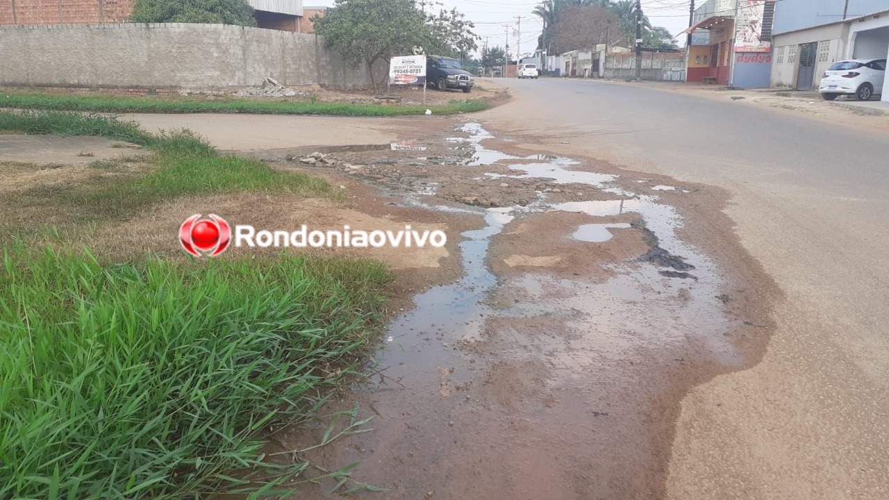 Água podre continua minando na esquina da Avenida Campos Sales com a Rua Vicunha, na zona Sul - Foto: Felipe Corona/Rondoniaovivo