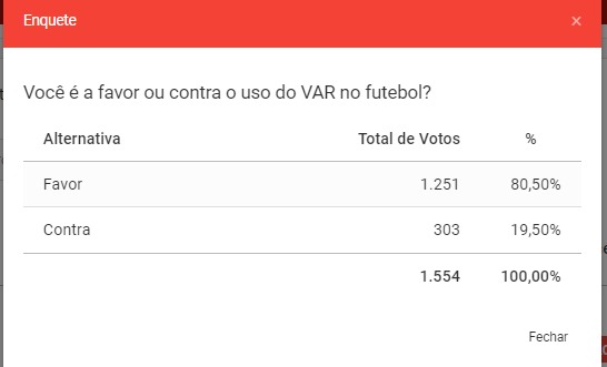 Ao todo foram computados 1554 votos e apenas 303 votos foram contra o uso do equipamento