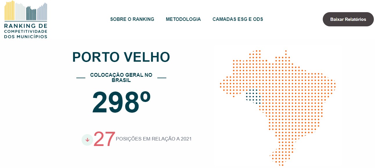 Na atualização divulgada nesta semana, Porto Velho está na 298º posição, onde caiu 27 colocações em relação ao ano passado.