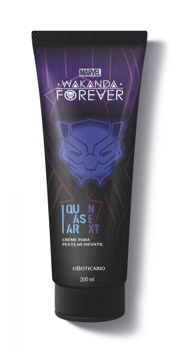 Quasar Next Wakanda chega com linha especialmente elaborada para que as crianças possam desbravar as possibilidades e explorar as novas aventuras; as novidades são únicas. A fragrância cítrica que está presente no Quasar Next Colônia Wakanda apresenta modernidade e tecnologia, combinada com fundo clean e musks confortáveis. No cuidado com os cabelos, o Quasar Wakanda Next Pomada Modeladora tem cor azul e promete desembaraçar os fios com facilidade e reduzir o frizz, auxiliando assim os penteados e entregando muita definição aos cachos.