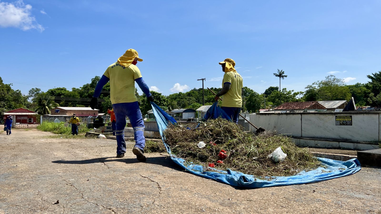 Roçagem, limpeza, recolhimento de entulhos e pintura são alguns dos serviços que estão sendo realizados há cerca de duas semanas nos cemitérios.