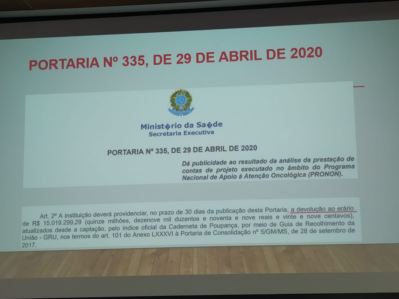 Imagem 08 – Portaria 335, de abril de 2020, do Ministério da Saúde, que determina a devolução de mais de 15 milhões de reais pelo Hospital do Amor ao Governo Federal