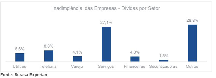 Ainda de acordo com o índice, a maior parte das empresas inadimplentes pertence ao setor de Serviços (53,4%). Em sequência estão o segmento de Comércio (37,6%), Indústria (7,8%), Primário (0,8%) e Outros (0,4%).