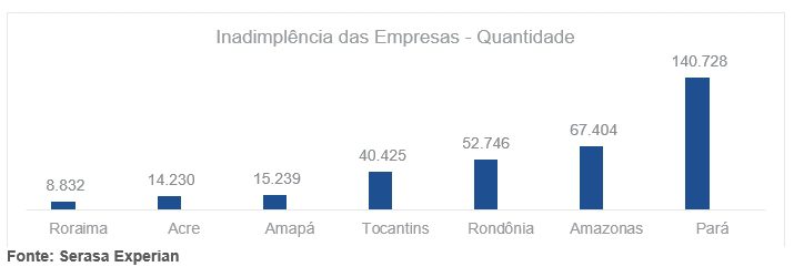 O Indicador de Inadimplência das Empresas da Serasa Experian revelou que, em outubro, o Amapá, o Pará e Rondônia registraram os maiores números de inadimplência das empresas desde 2019, quando foi iniciada a série histórica do índice. Além disso, o Amazonas e a Roraima tiveram, também em outubro, a maior quantidade de empreendimentos negativados desde o começo do ano.
