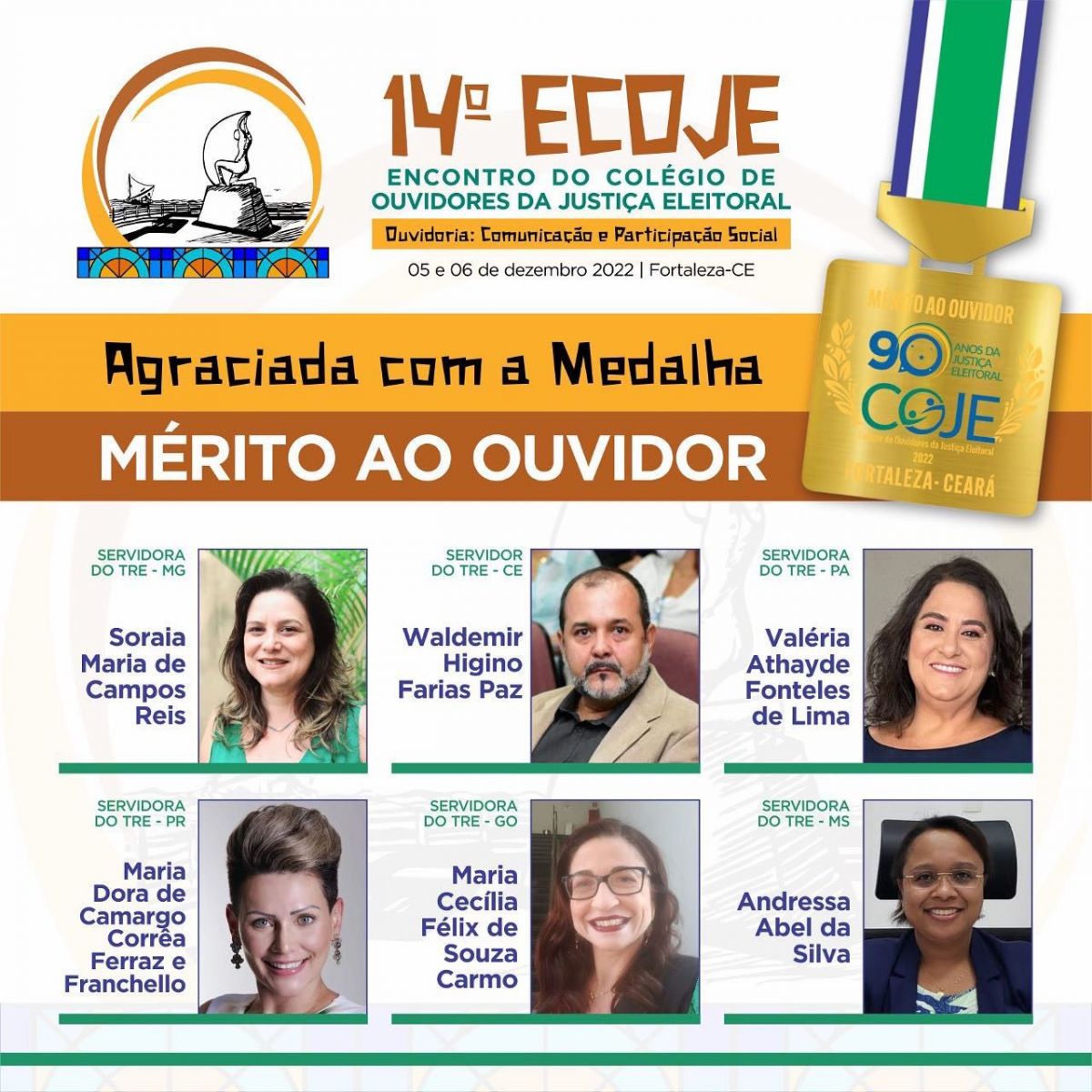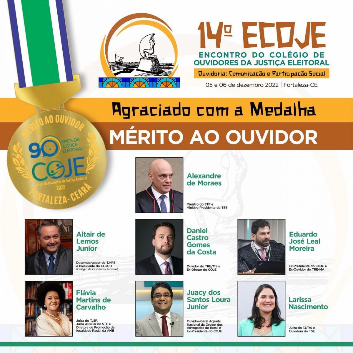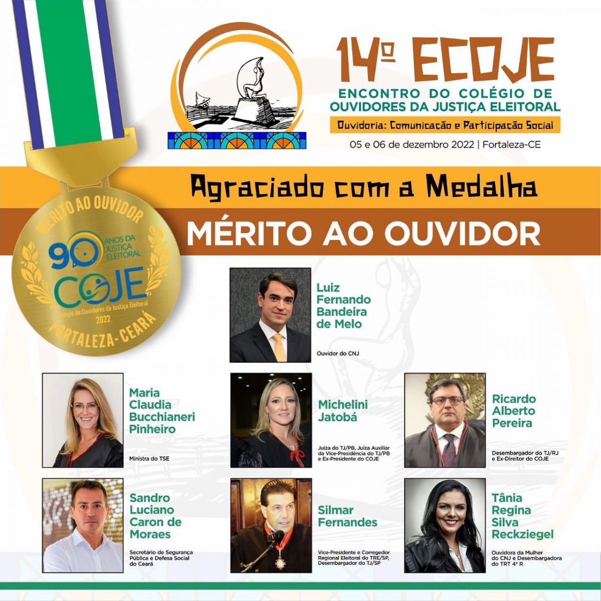 No evento algumas autoridades, receberão medalhas do mérito ao ouvidor e a medalha também é comemorativa aos 90 anos da Justiça Eleitoral Brasileira.As personalidades que contribuíram ou que vem contribuindo, para a consolidação e fortalecimento das Ouvidorias, serão homenageadas.