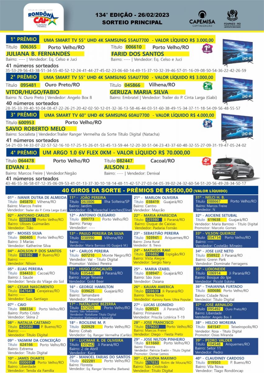 No último Rondôncap de fevereiro foram mais 47 ganhadores espalhados por todo estado, vamos ver os melhores momentos do sorteio: